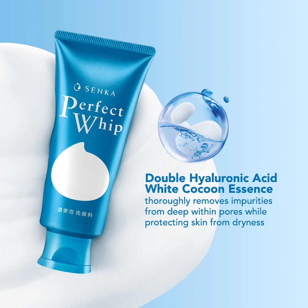Perfect Whip is white whip type facial cleanser with an ultra-rich, dense foam to cushion the skin. It penetrate into pores to clean impurities and excees sebum. Skin becomes clean, soft and hydrated. Suitable for any skin type.